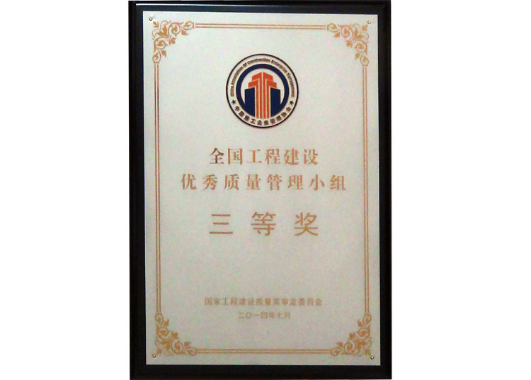 全國工程建設優秀質量管理小組三等獎
